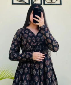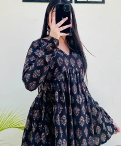 Cotton Black Flared Floral Print Aliacut Peplum Top