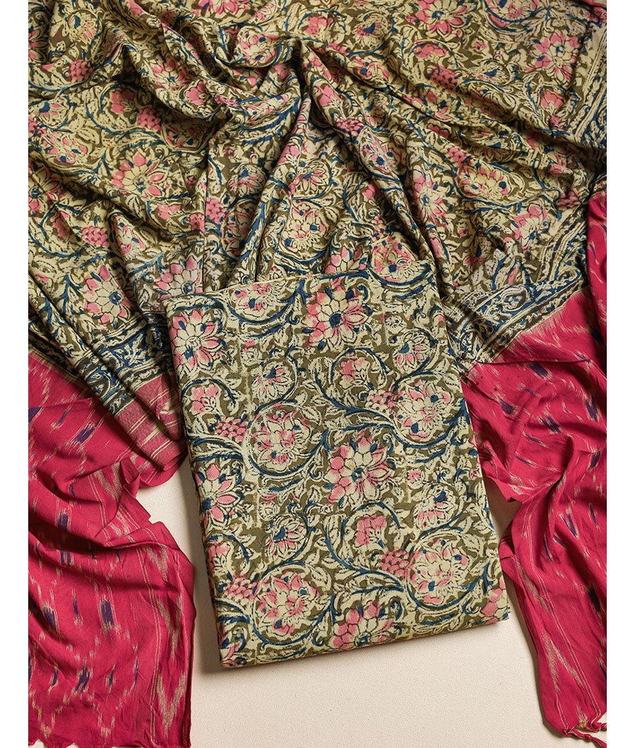 Beautiful Cotton Kalamkari 2 Piece Suit set. This Cotton Kalamkari Suit set is soft & breathable. Cotton Kalamkari Suit set is a sturdy and durable fabric whose fibers have high tensile strength, and they can tolerate immense pressure without collapsing. Cotton Kalamkari Top with kalamkari dupatta is a very versatile and sustainable material.