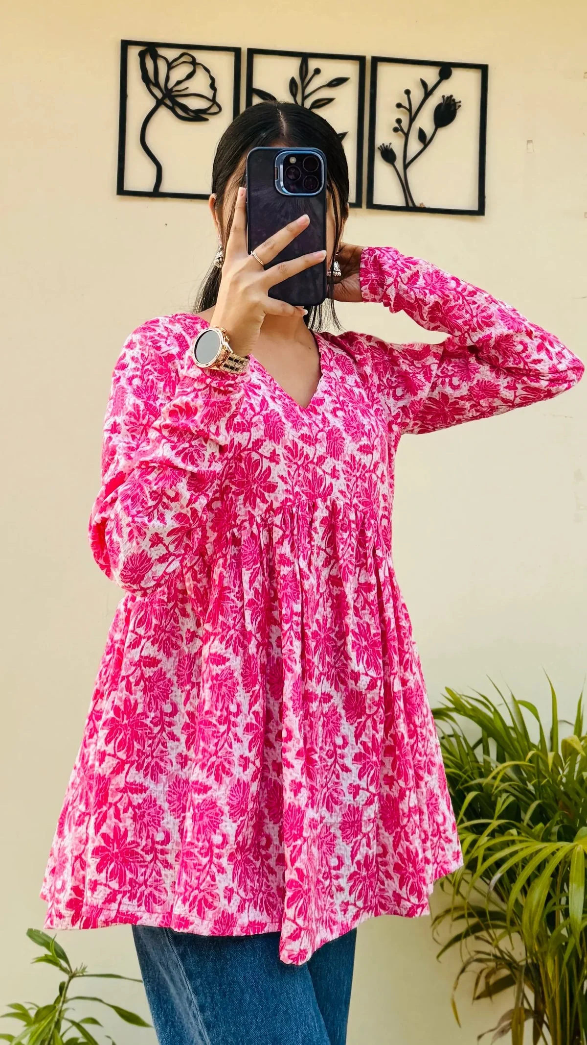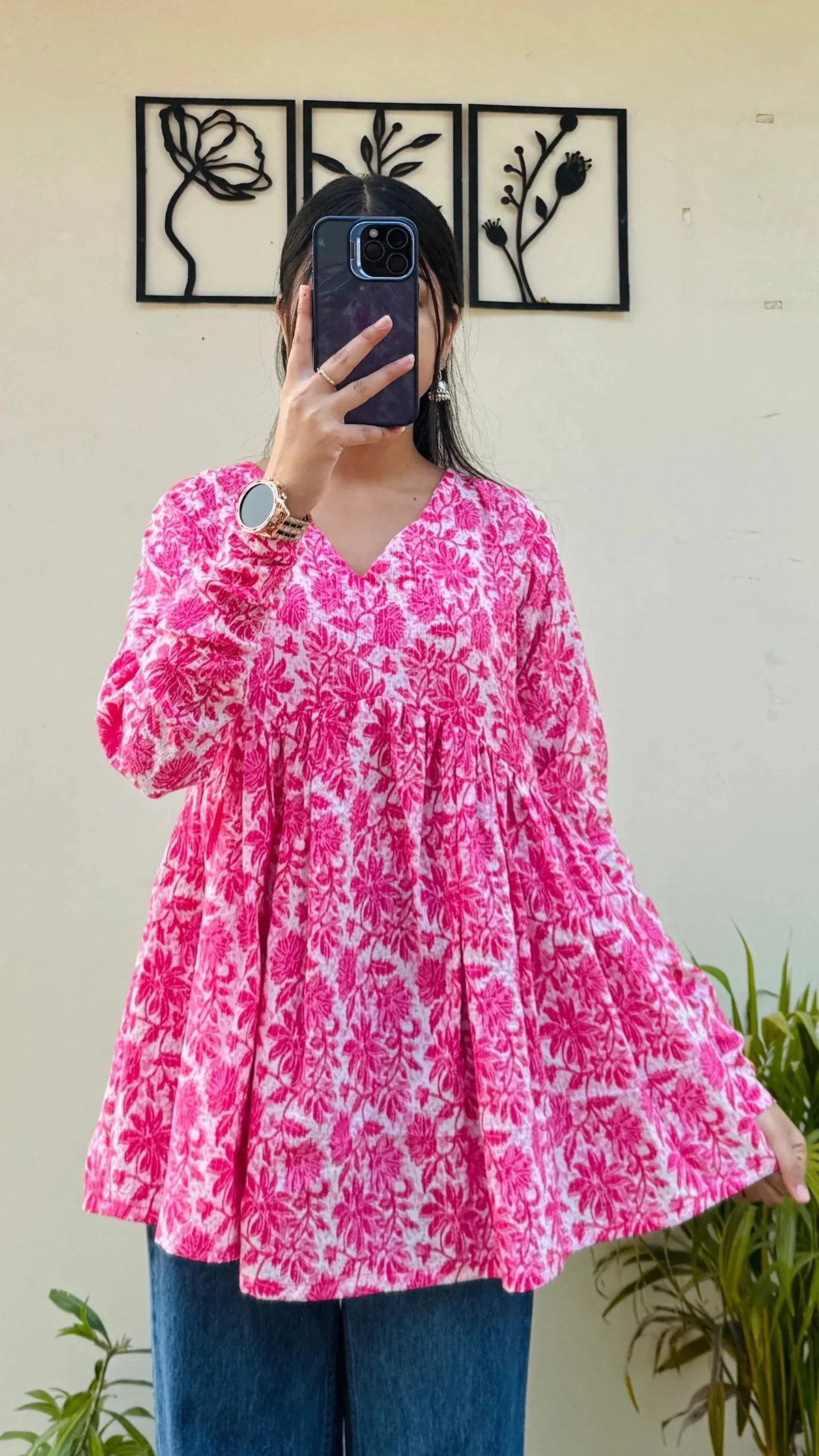 Cotton Katha Pink Printed Flared Peplum Top