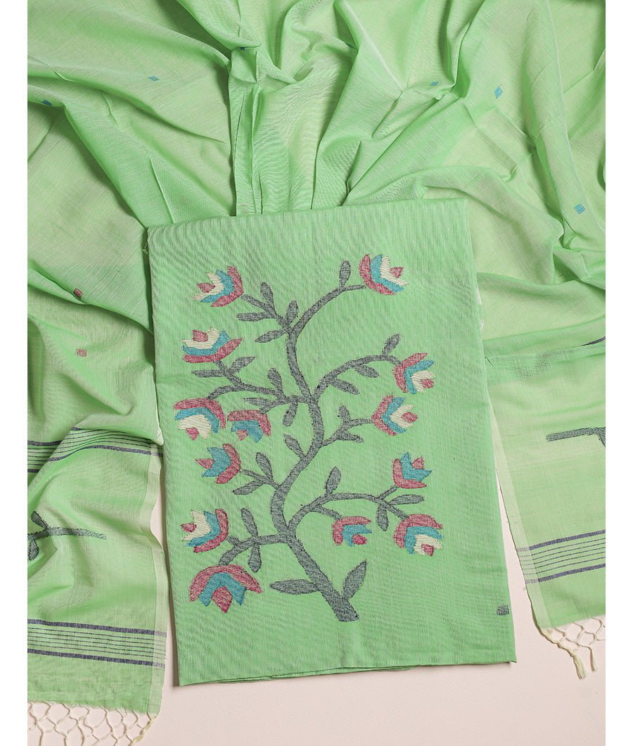 Experience the elegance of traditional craftsmanship with this pure cotton handloom Jamdhani suit set. Woven with meticulous care, the breathable cotton fabric ensures comfort while the intricate Jamdhani patterns add timeless sophistication, making it ideal for both festive occasions and everyday wear. This suit set offers a refined blend of style, comfort, and heritage artistry.