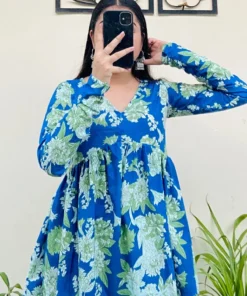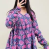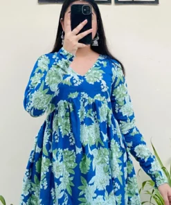 Cotton Flared Blue Printed Aliacut Peplum Top